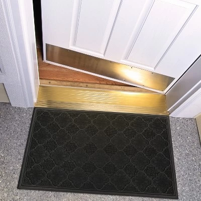 - Eco-friendly mat constructed of recycled rubber material, perfect for scraping dirt and debris from shoes