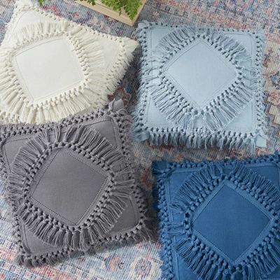 Be the first to review “18″x18″ Diamond Square Throw Pillow With Fringe – Nicole Curtis” Cancel reply