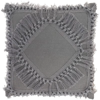 18″x18″ Diamond Square Throw Pillow With Fringe – Nicole Curtis