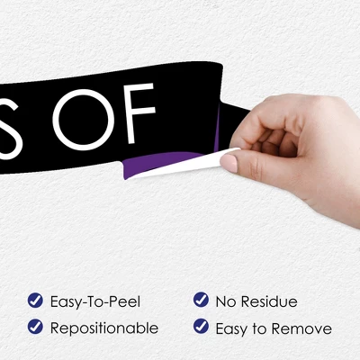 Big Dot of Happiness Purple Grad – Best is Yet to Come Wall Decals includes 1 sheet of 20 assorted vinyl wall art stickers that you can arrange to add a special touch to your home decor. Wall Decal sheet measures 50″ wide by 16.5″ tall. Pieces range in size from 26.5 x 5.75″ to 2.5 x 2.5″. Effortless Decor: The Purple Grad wall stickers are an easy solution for bringing in some added charm to your space within minutes! You can use the wall decals for party or celebration rooms, impressive photo backdrops, or as easy decor at your Graduation Party. Easy to Use: Purple Grad – Best is Yet to Come vinyl decals are easy-to-peel and repositionable. Wall art stickers will adhere to various surfaces including painted walls, plastic, wood, glass, and metal. To use, make sure your surface is clean and dry. Slowly peel the sticker from the paper to avoid tearing and smooth over with your hand. They are also easy to remove, leaving no residue. High-Quality Supply: Purple Grad – Best is Yet to Come wall stickers come with a quality matte finish and vibrant colors. They are printed on water-resistant professional quality material and will arrive on one full sheet rolled. Made In The USA: Purple Grad Wall Decals are designed and manufactured at our Wisconsin facility using materials that are Made in the USA.