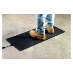 Super Foot Warmer provides comforting relief to cold feet and legs. Direct and radiant heat promotes blood flow to feet, warming the entire body. Ideal for use on cold, impervious floors and in drafty areas. Perfect for use under desks or at standing workstations. Uses only 135-Watt, saves energy and will not blow fuses. Maintained operational temperature of approximately 130 . Measures 16 in. x 36 in. For use on concrete, stone or tile floors.