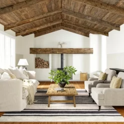 Curated with care, the Lauren Liess x Rugs USA collection helps make the hallmarks of Laurens sophisticated stylerustic color; organic texture; a vintage feelaccessible to all. The Moonglade Washable Striped Area Rug makes this collection even more exciting, with a plush, one-piece design that comes clean in the washing machine! Made from washable wool, Moonglade is soft and luxurious, yet able to withstand the everyday wear and tear of pets, kids, meals, and parties. You can feel confident in this gorgeous ivory-and-stripes design, knowing you’ll still be able to love your lifestyle without sacrificing your home style.