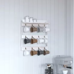 - Wooden Hanging Coffee Cup Rack with Storage Shelf