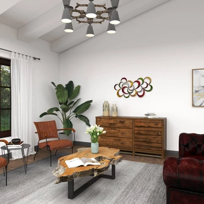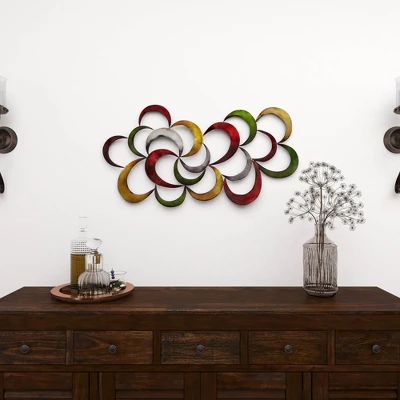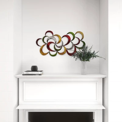 - •Abstract wall art can be installed horizontally, designed with spiraling crescent moon shapes in red, yellow, blue, green, and silver finish
