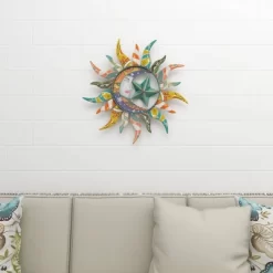 Metal Sun And Moon Indoor Outdoor Iron Wall Decor With Abstract Patterns – Olivia & May