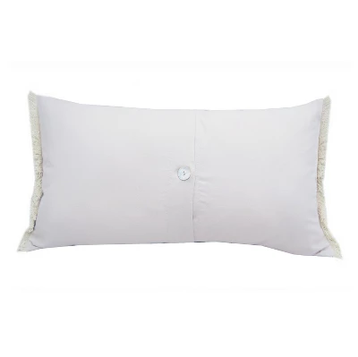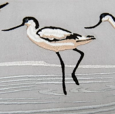 Wading embroidered Avocets embellish this grey lumbar style pillow, complete with fringed edges. Incredibly detailed threads in neutrals enhance this pillow cover to create the perfect accent for that seaside retreat.Envelope-style rear panels with buttoned closure make it easy for insert removal and cleaning. Cleaning instructions: Remove cover and wash on gentle cycle, air dry.