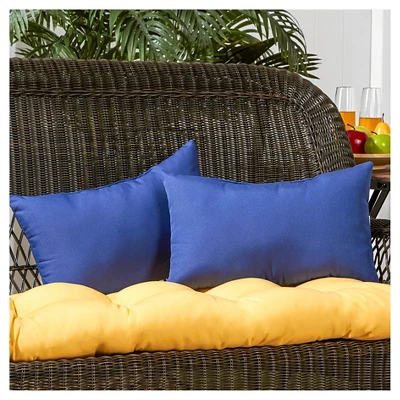 Add a stylish accent to your outdoor furniture with this set of two Kensington Garden 19 x 12 inch outdoor accent pillows. Each pillow is overstuffed with 100% soft polyfiber fill, made from 100% recycled, post-consumer plastic bottles, for added comfort, strength and durability. It’s exterior shell is made from a 100% polyester UV-resistant outdoor fabric. Pillows feature a sewn closure and knife edge design. A variety of colors and prints are available to enhance your outdoor decor.